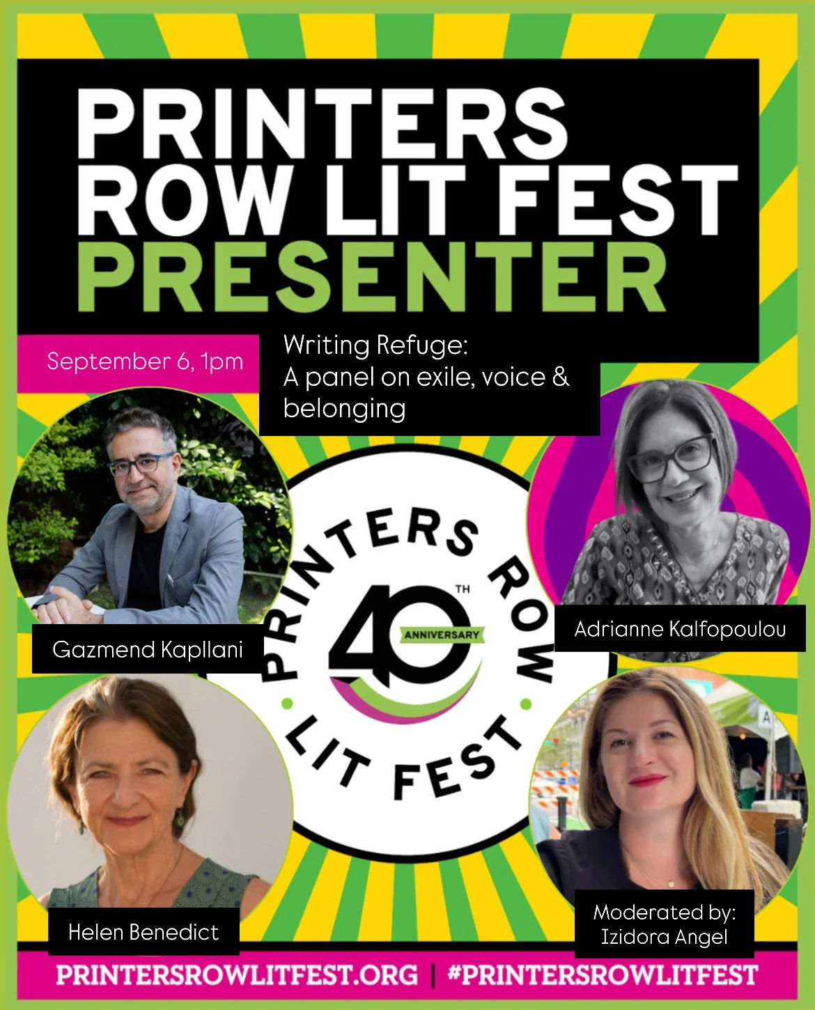 I’ll be moderating this panel on exile, voice & belonging at Printers Row Lit Fest. Featuring Helen Benedict, The Good Deed, Gazmend Kapllani, Wrongland, and Adrianne Kalfopoulou, The Re in Refuge.